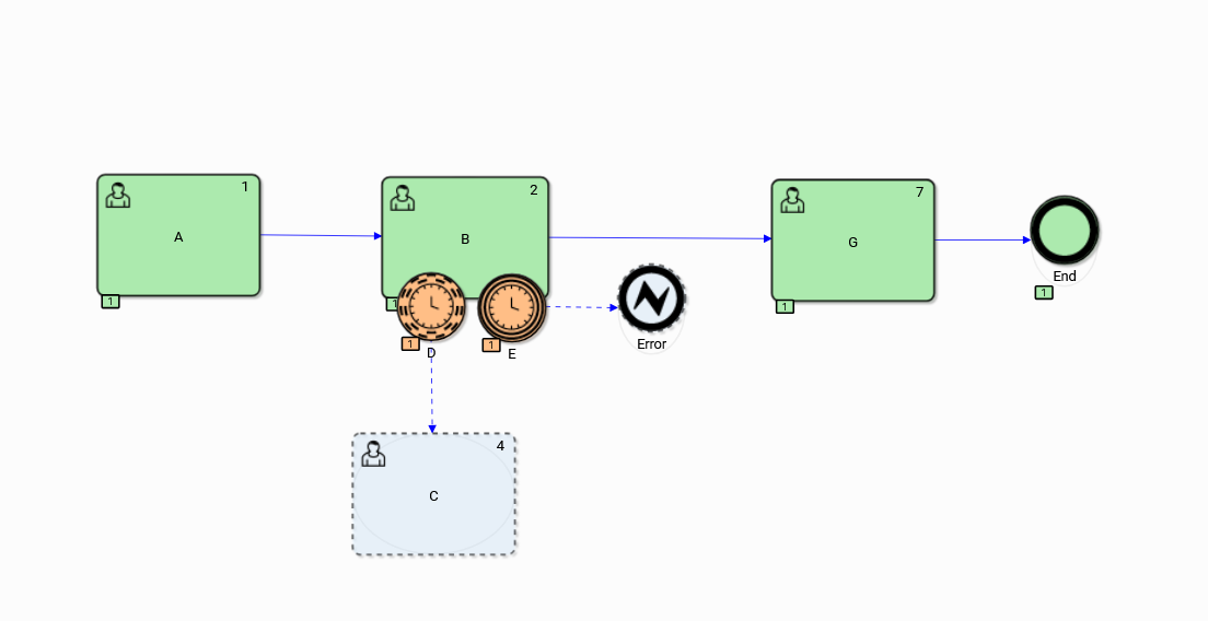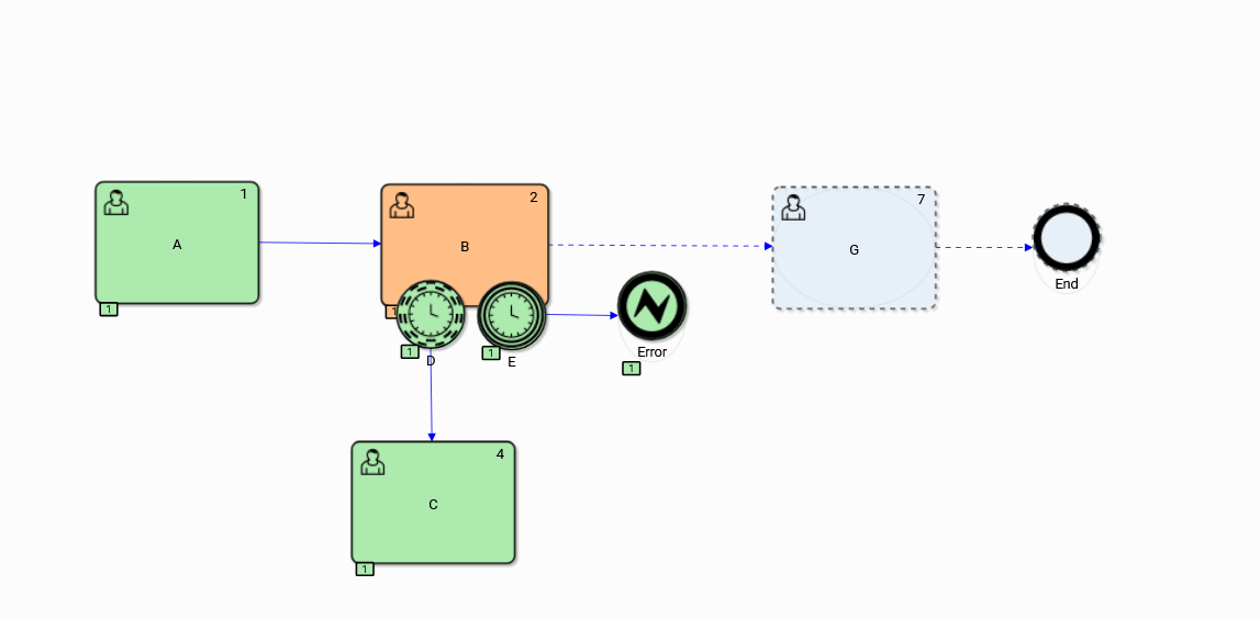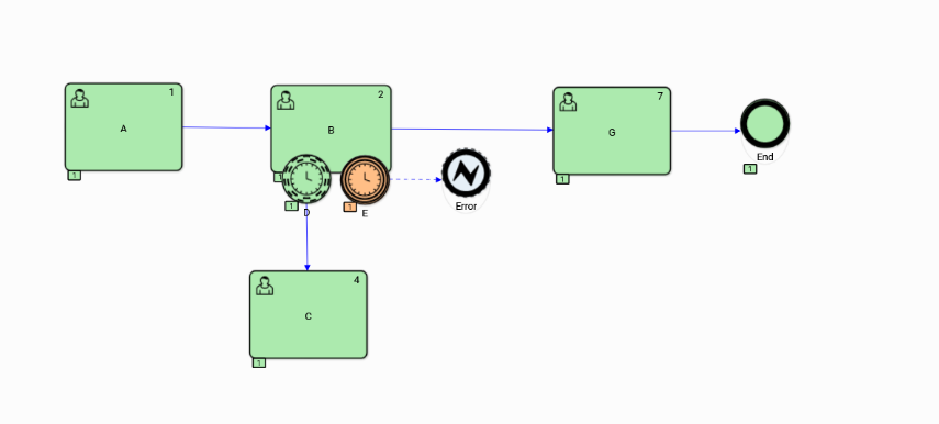 Upływ czasu spowodował, że przekroczono czas krytyczny zadania B czego efektem było przekazanie znacznika poprzez przepływ wyjątku do zdarzenia końcowego Błąd kończącego proces.