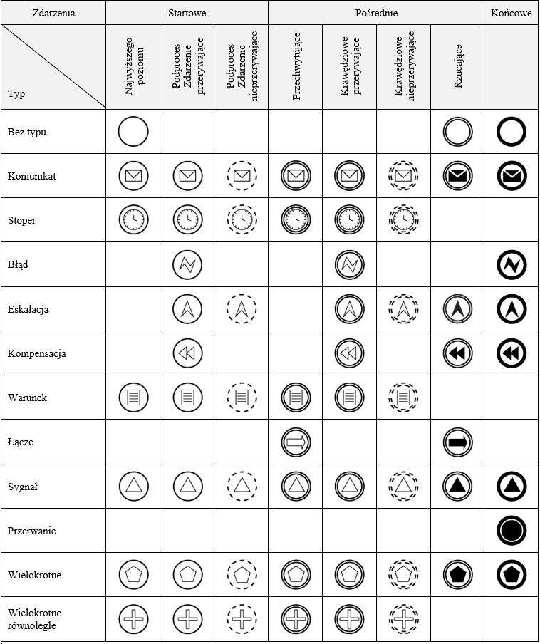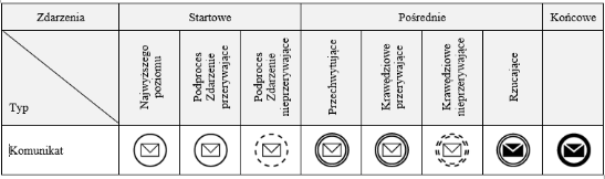 Tabela 1. Zbiorcza tabela typów zdarzeń