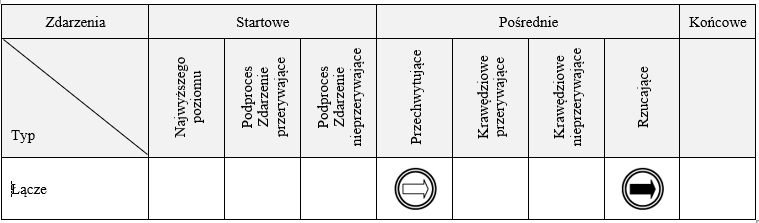 • Zdarzenie pośrednie rzucające po otrzymaniu aktywizującego go znacznika tworzy i wysyła wyzwalacz zgodnie z zawartym w jego definicji opisem zdarzenia. Bezpośrednio po wykonaniu powyższej operacji znacznik jest przekazywany do następnej czynności.