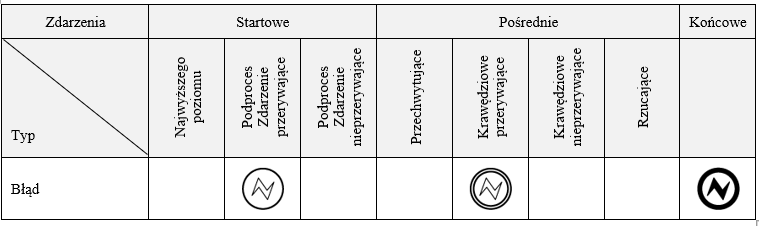 • Jeżeli Podproces sterowany zdarzeniem startuje dla zdarzenia Błąd to obejmujący go Proces/Podproces oczekuje na przerwanie awaryjne do jego zakończenia .