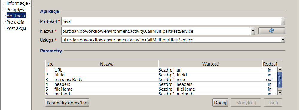 - Wywołaj zewnętrzne API (REST/SOAP): Najważniejsza akcja z perspektywy IT. Pozwala na wysłanie danych do systemu ERP, zaktualizowanie statusu w CRM, zapisanie dokumentu w repozytorium (np. EZD RP, SharePoint) czy uruchomienie skryptu na serwerze.
