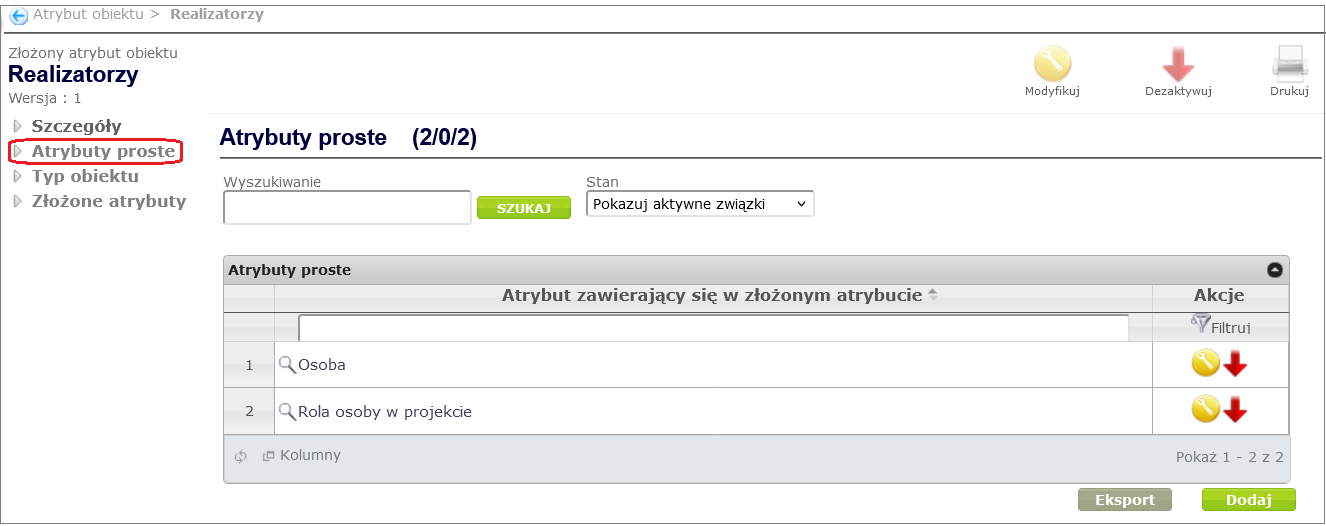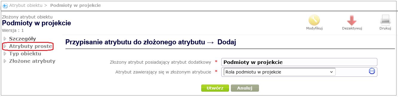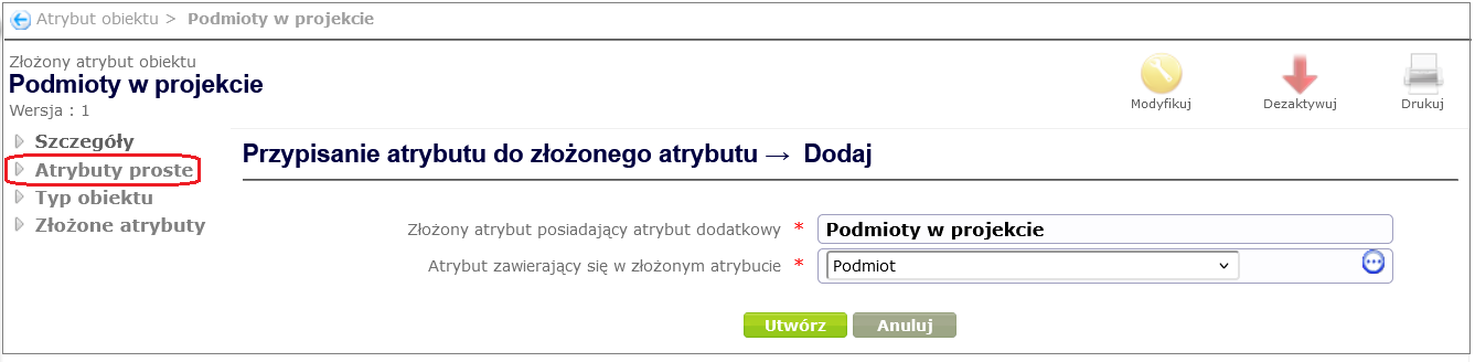 - complex object attributes – attributes that contain simple attributes. Complex attributes are used, among other things, to create tables in forms.