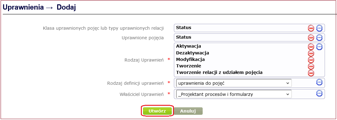 Figure 20. Creating a new status in the Status dictionary