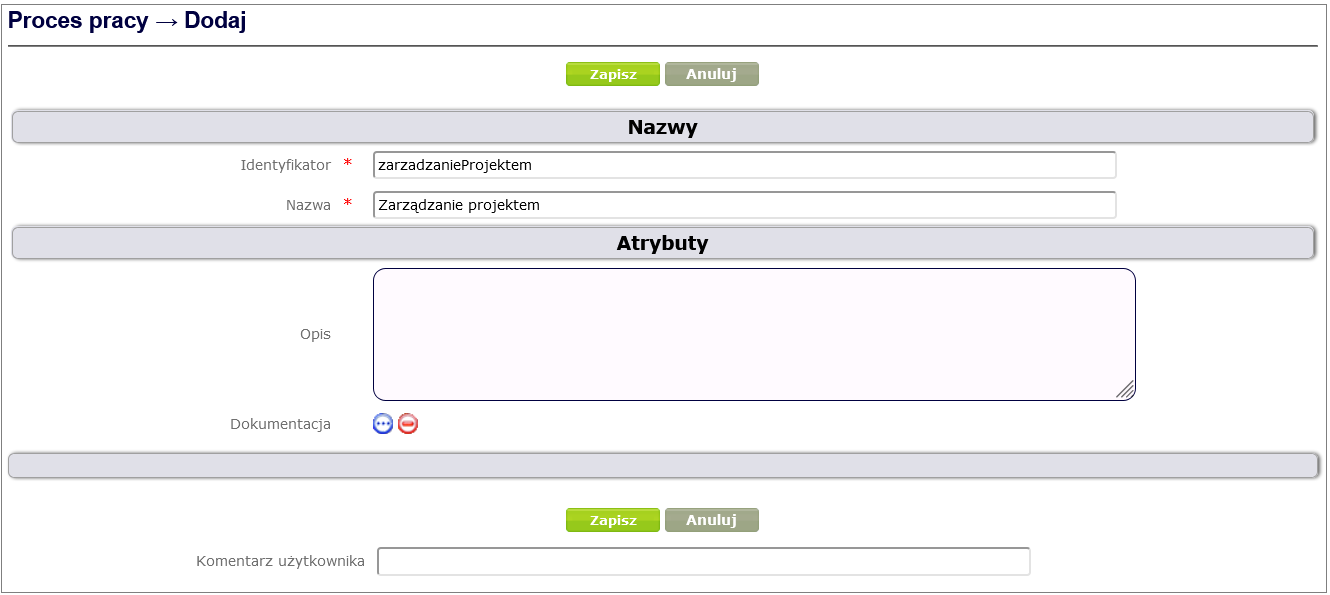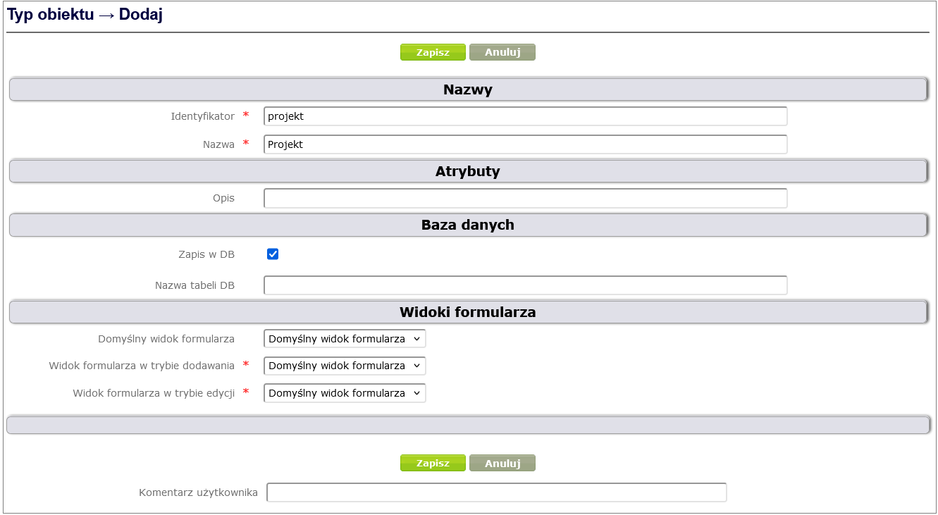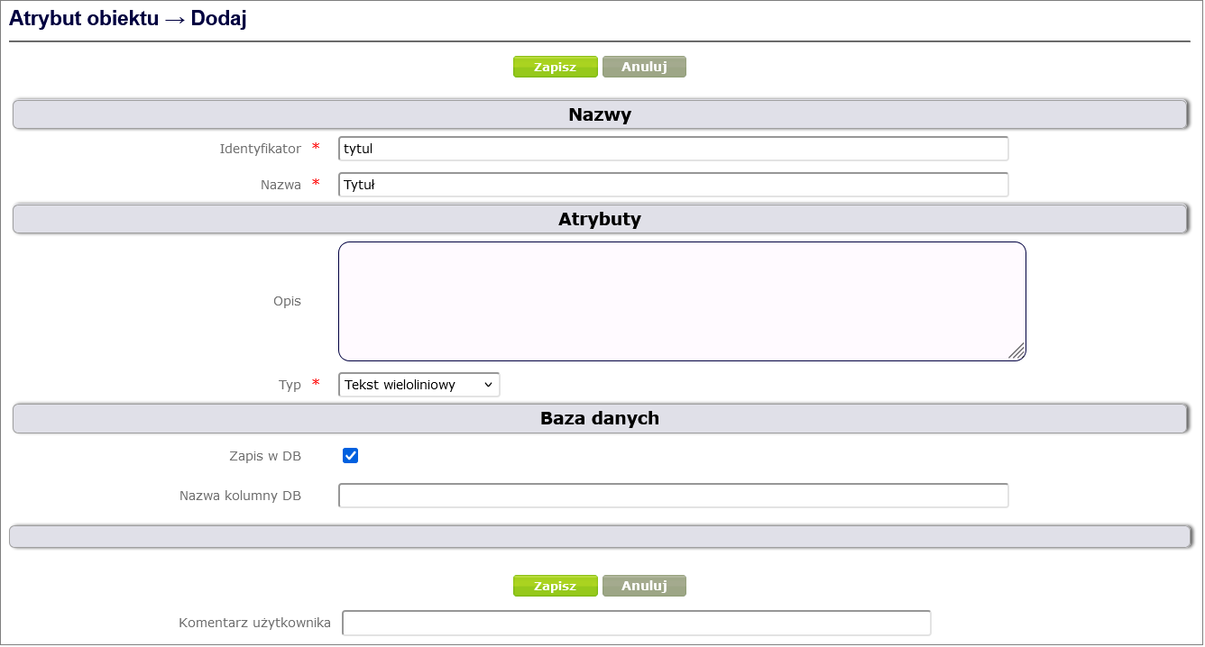 To define a complex attribute, click Process and form design -> Object attributes -> Add, select Complex object attribute, fill in the required fields and finally click the Save button ( Figure 24 ).