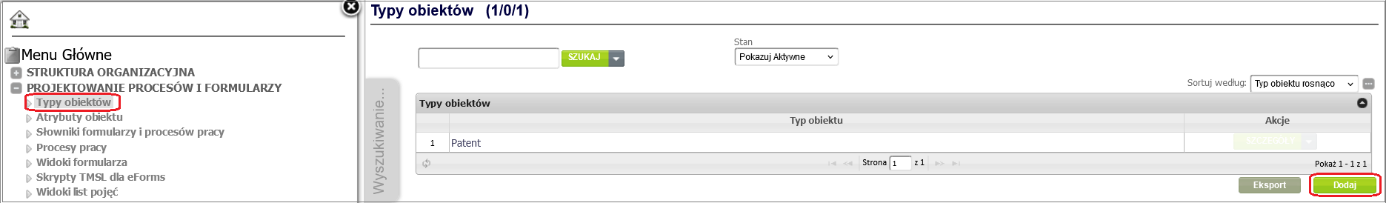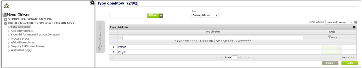 Figure 3. Object type Project in the object type list