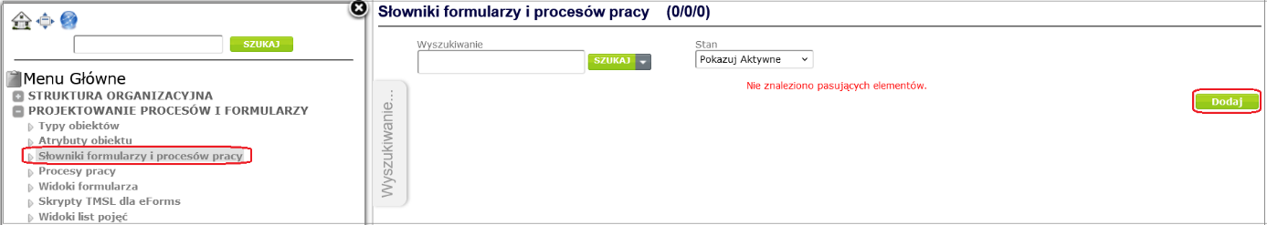 To create a dictionary, expand the Process and Form Design item in the Navigator menu, select the Form and Workflow Dictionaries item, and then click the Add button ( Figure 11 ).