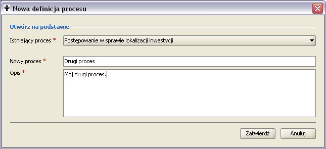 Rysunek 7: Tworzenie procesu na podstawie już istniejącego