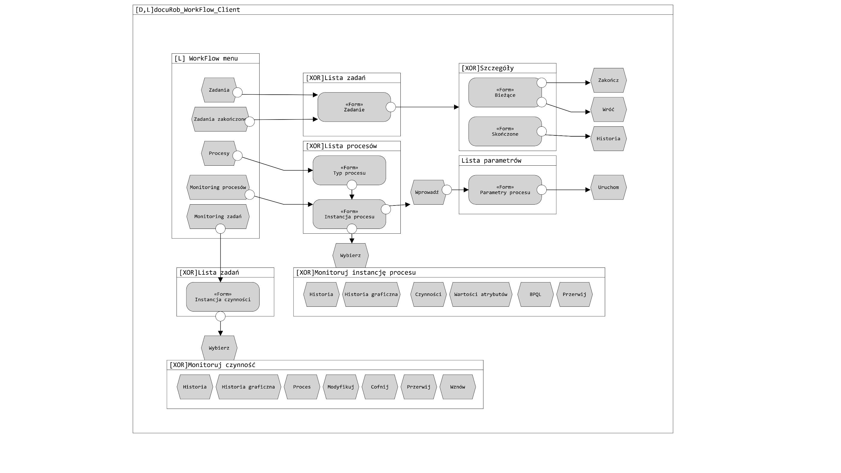 The WorkFlow menu window ( Figure 2 ) is available from any web client window and it includes all the graphic interface features of business processes managed by the docuRob® WorkFlow platform . Active list items are links to the appropriate GUI elements of the web client. The default interface element is the list of current tasks available after the user logs in . The list contains Tasks assigned to the system user within their role , competences and authorizations. An example of a list of current tasks is shown in Figure 3 .